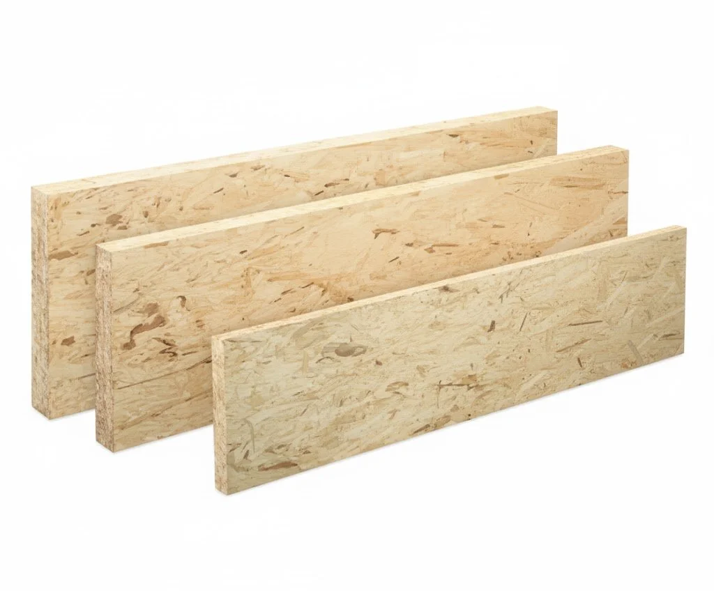 OSB (Oriented Strand Board): A widely used, cost-effective structural panel made of compressed, cross-oriented layers of wood strands and adhesive, common for roof, wall, and floor sheathing.